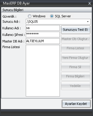 İlk olarak master veri tabanını oluşturmalı ve firmaları (dönem olarakd a değerlendire bilirsiniz.) oluşturmalısınız. Tüm işlemleri tamamladıktan sonra ayarları kaydetdemeniz yeterli.